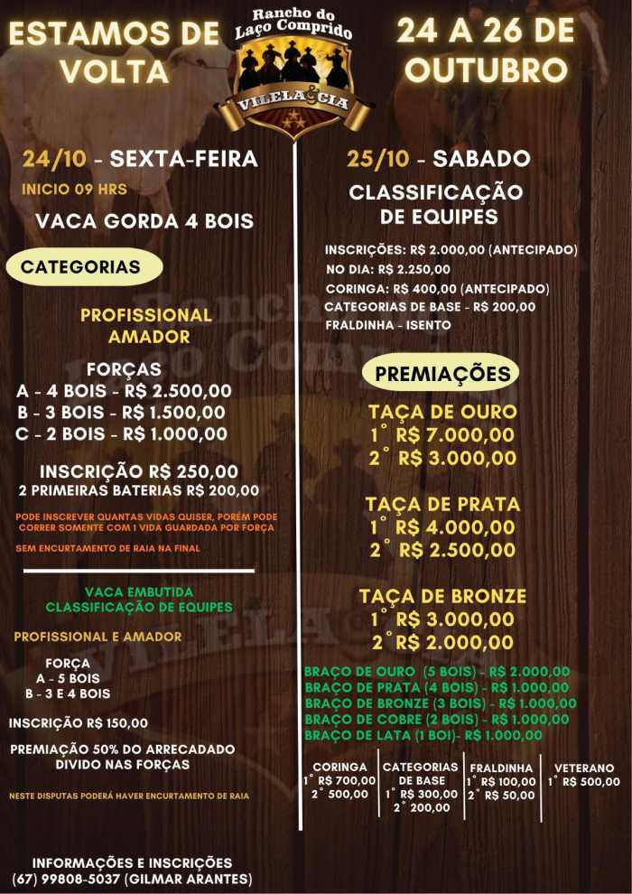 Informações e inscrições: (67) 9 9808-5037 – Gilmar Arantes